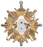 Schützenorden in Gold/Rot mit Gravur Ihres individuellen Wunschtextes und Vereinswappens bzw. Standardauflagen Ihrer Wahl.