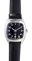 Preisgünstige Armbanduhr mit Gravur Ihrer Initialen oder Ihres Namens und mit Lederband.