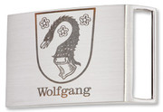 Praktische Gürtelschnalle mit Namen und/oder Logo. Wahlweise mit Ledergürtel.